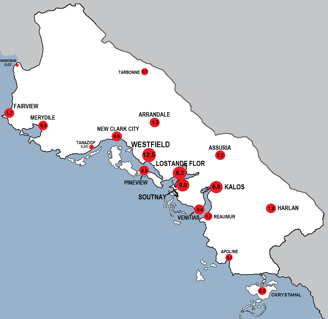 Ces chiffres font de Kalos une ville de première importance dans le paysage Simlandais. Son Maire Halotime à tout fait pour développer le potentiel économique de sa ville: