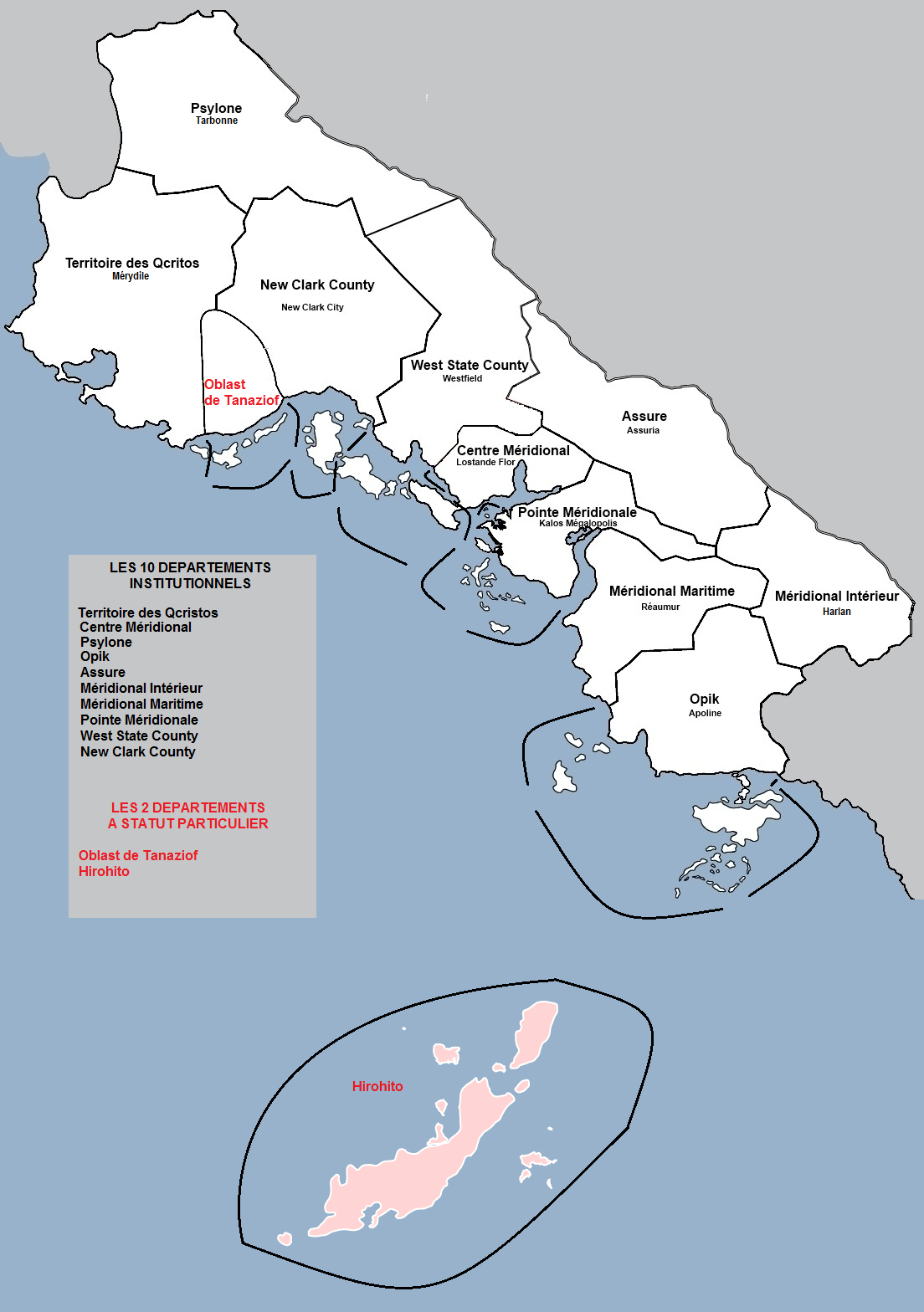 Départements | Assure Centre Meridional Meridional Interieur Meridional Maritime New Clark County Opik Pointe Méridionale Psylone Territoire des Qcristos West State County |