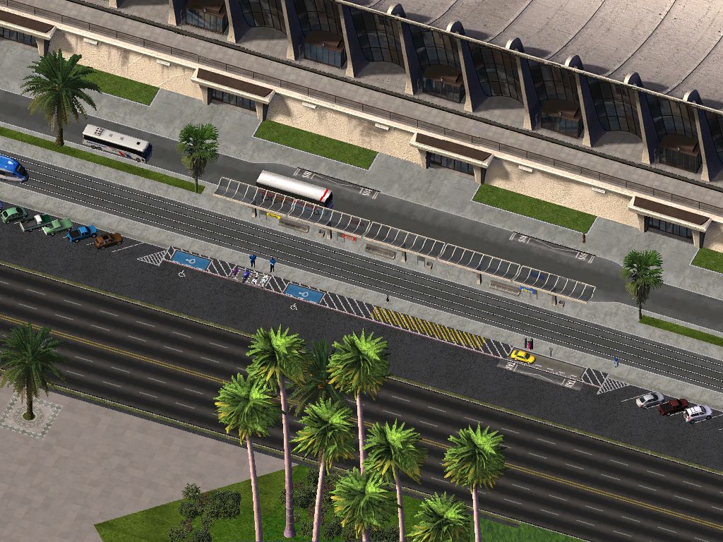 L'emplacement destiné à la dépose se trouve devant les stations de la navette. Elles sont rainurées en jaune.