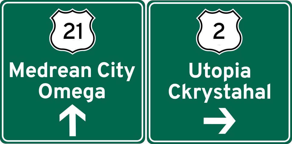 Les panneaux de signalisation affichant les différentes sorties sont également de couleur verte et les informations sont écrites en blanc. Le numéro de sortie apparaît dans la partie inférieure à l'intérieur d'un quadrilatère jaune. Celui-ci pointe vers la droite lorsque la sortie se situe à droite, c'est-à-dire la majorité du temps. Il pointe à gauche, lorsque la sortie est à gauche.