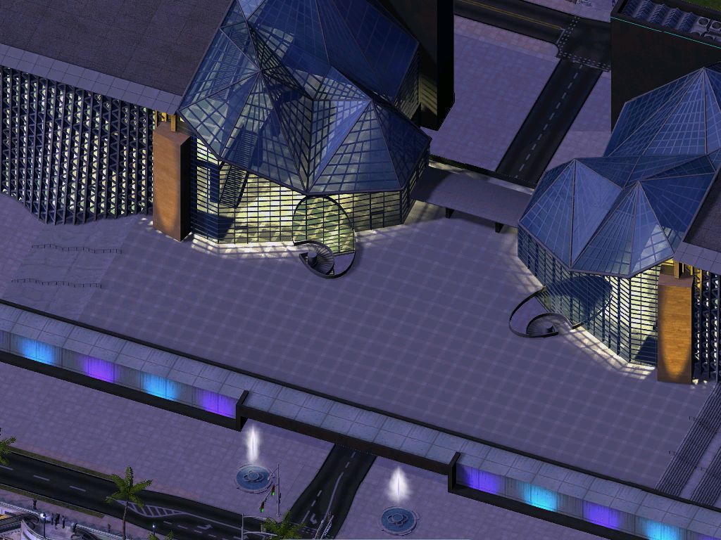 l'architectea conçu des bâtiments avec un fond de granit noir presque sans relief et un front de verre plié brillant.