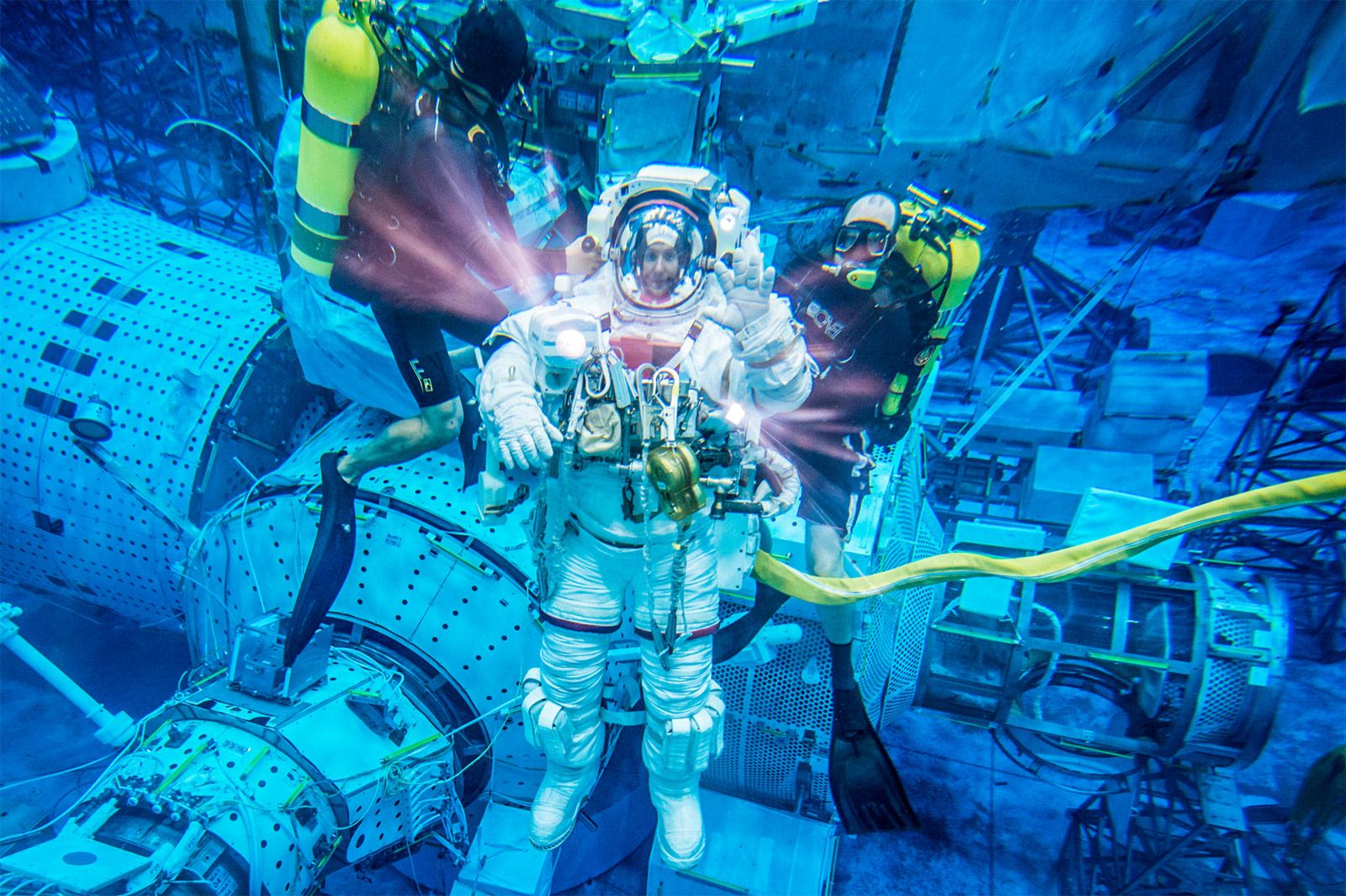 Les tests se déroulent sur 3 mois également voire plus en fonction des missions. Il s'agit de se mettre en condition quasi-réelle dans une navette spatiale aménagée sous un bassin d'eau pour reproduire les conditions d'apesanteurs.