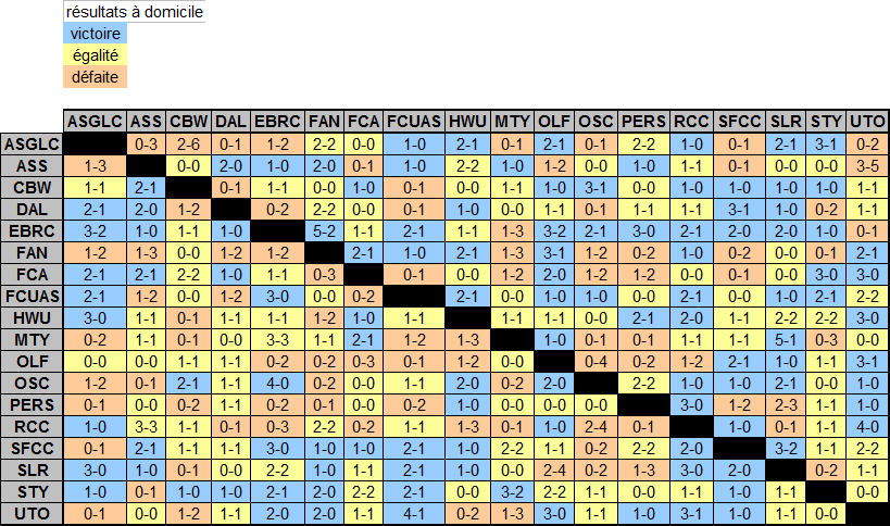 6 | SFC Colomb City | 34 | 13 | 10 | 11 | 36 | 34 | +2 | 49 |