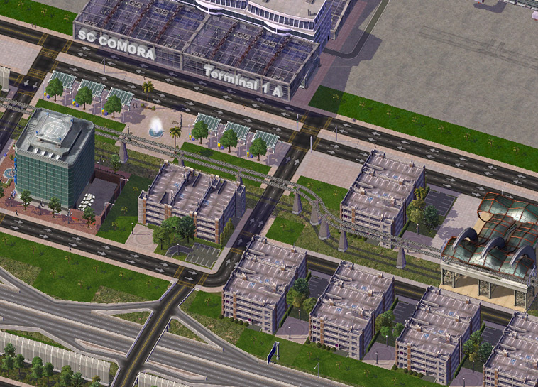 3e plate-forme aéroporturaire de Simland en terme de trafic, 1900 avions s'y posent et y décollent chaque jour. C'est un peu moins que l'aéroport international Pajaros del Volcan (Los Epinas, Etat des Grands Lacs) qui enregistre 2200 mouvements quotidiens, et l'aéroport Kennedy (New Amsterdam, Etat du Queens) qui en comptabilise 2000. C'est néanmoins le 2e aéroport mondial et le 1er de Simland en nombre de passagers (80 millions par an), juste derrière l'aéroport international d'Atlanta aux Etats-Unis (84 millions de passagers en 2005) et juste devant Pajaros del Volcan (78 millions en 2007). Mais faut-il préciser tout de même que l'aéroport de Comora voit transiter chaque jour un grand nombre de voyageurs qui reprennent aussitôt une correspondance, et ne restent pas à Sun City, ce qui explique ce flux important de passagers. Effectivement, Comora sert d'escale entre les vols reliant l'Asie à l'Amérique du Nord et l'Amérique du Sud. Beaucoup de compagnie aériennes étrangères (non simlandaises) sont présentes à Comora.
