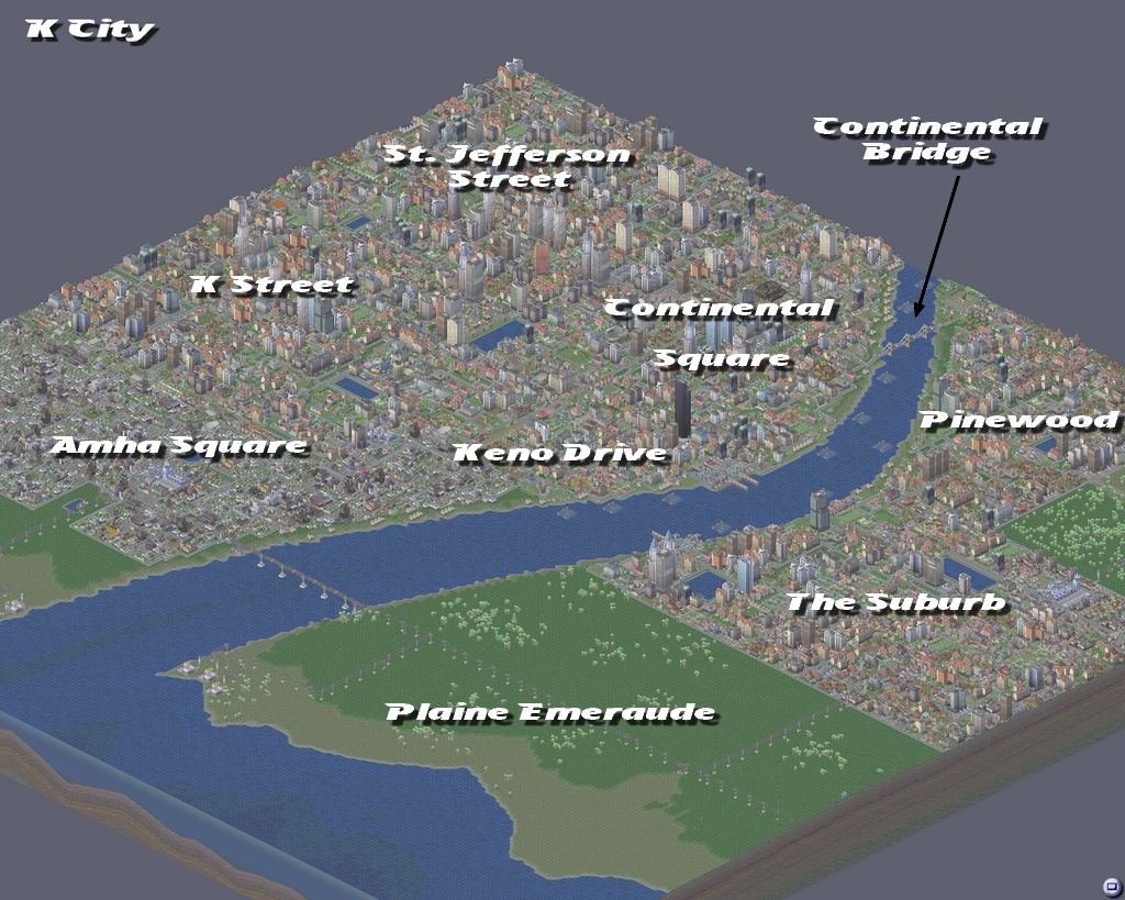Continental City ou K City est une ancienne ville du Continental State, son maire est Vekin. Juste à propos, K City ne tire pas du tout son nom du Groupe K. Contniental City est une ville réputée pour ses hautes technologies, ses laboratoires hi-tech, sa base de lancement de fusée et aussi, hélas, pour le prix du terrain, très élevé.