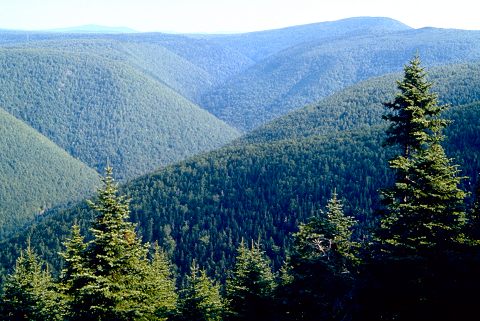 Sa principale végétation est constituée de conifères résistants aux rudes hivers du CS , ainsi que quelques forêts a feuilles caducs au sud, ou les deux.