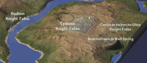 Cydonia est une ville des Grandes Plaines, son maire est LordFabiodu13.Elle fut crée sur l'ancienne aglomération de New-Nash-ville , a la fin du 19eme siecle . Ses habitant sont connus pour avoir un caractere indépandant mais pas communautaire .