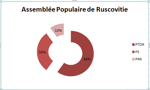 L'Assemblée populaire est composé de 76 députés représentants les communes de Ruscovitie: ce sont les généraux qui décident et votent des Lois.