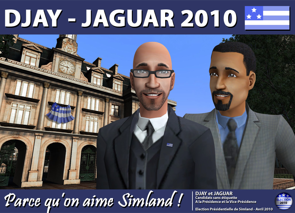 Alors que Simland s'enfonce dans une crise, après l'échec consécutif des Présidents La Violette et Lucas dans la gestion de la Nation, Djay annonce officiellement sa candidature pour l'Élection Présidentielle d'Avril 2010. A la surprise de tous, son colistier est Jaguar, une figure illustre de la politique simlandaise, et la vie de Simland en général. C'est le troisième mandat présidentiel brigué par Djay. Mais la Constitution ne l'interdit pas. Il avait déjà été Président de la Nation en 2004 et en 2007.