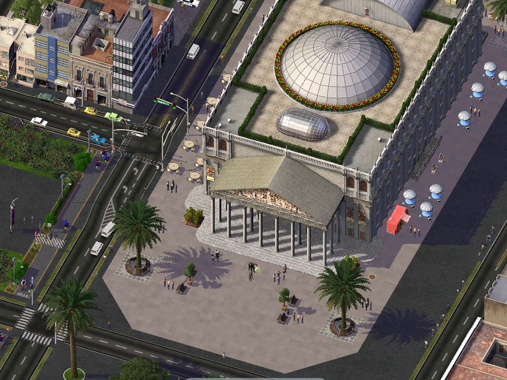 Son portique est composé de 16 colonnes corinthiennes. Au dessus un fronton en marbre nous montre appolon et les neufs muses.