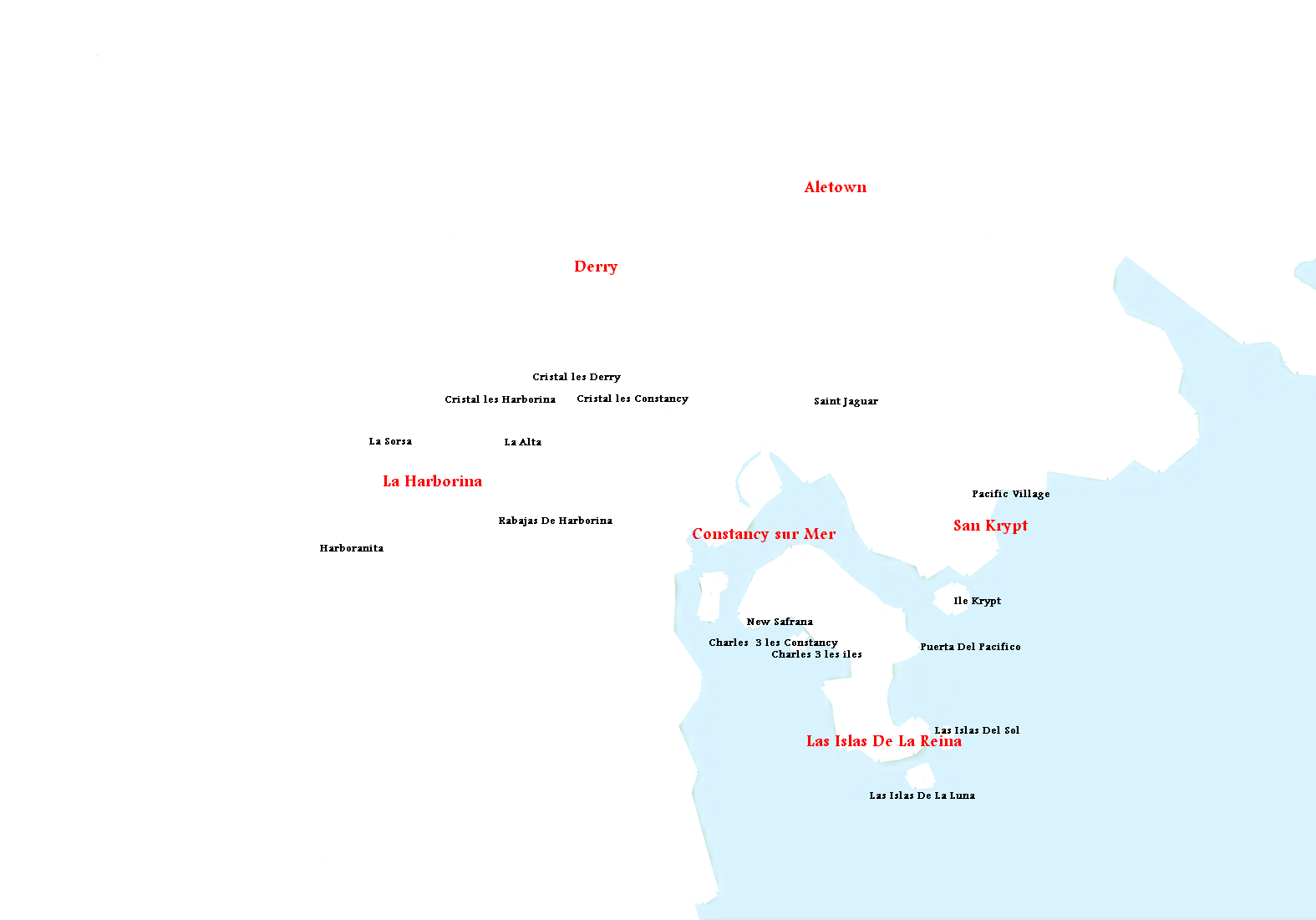 Las Islas De La Reina est la deuxième ville harboréienne avec une agglomération de près de 10 000 000 d'habitants elle est souvent qualifiée de jungle urbaine du fait de son urbanisation incroyablement écrasante avec un seul vrais point vert sur une superficie plutôt petite, ainsi que de ville dortoir du fait qu'il n'y a pratiquement que des logements, plus de 50% de la population active travail à Constancy ou à San Krypt la ville détient aussi des dizaines de kilomètres de plage de sable fin au niveau de la rencontre de la mer harboréienne et de l'océan pacifique qui on résulté en de nombreuses vagues. Ces plages sont très appréciées et utilisées en grande partie par les surfeurs. La ville fut aussi qualifiée de "Grande Motte du Pacifique".