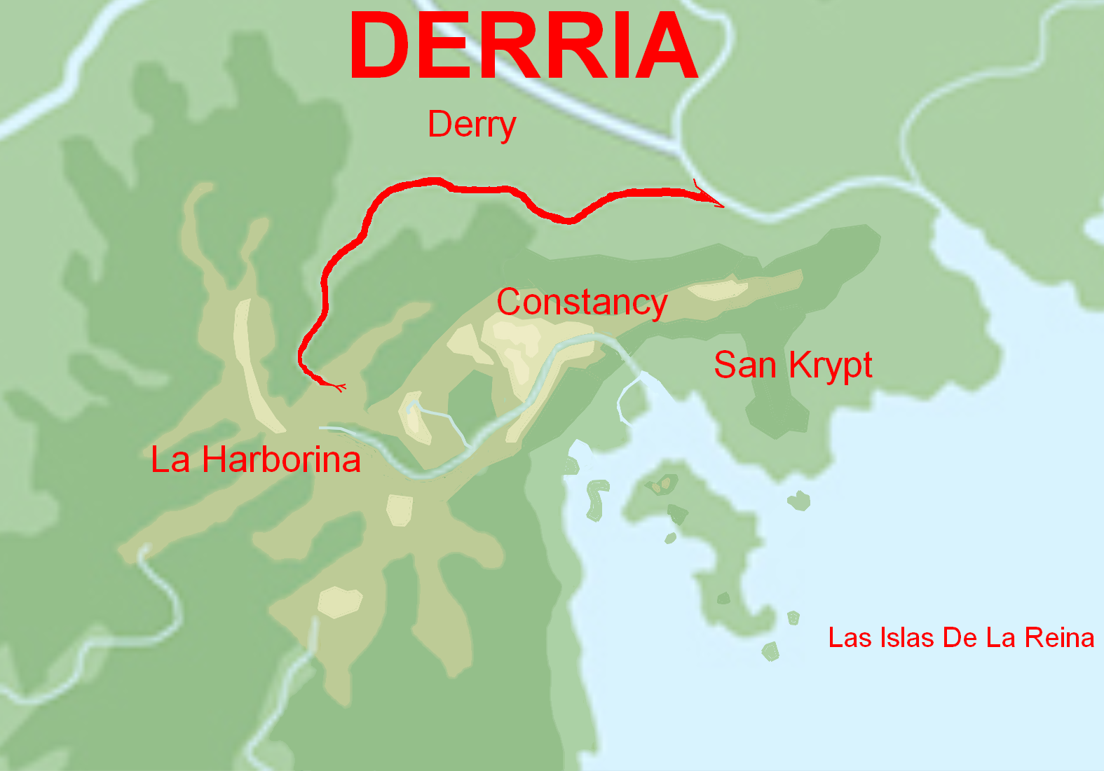 Derry est la cinquième ville harboréienne avec une agglomération de 1 200 000 habitants la ville est le poumon industrielle de l'English Harbor, la ville est spécialisée dans l'industrie de pointe ainsi que dans la recherche pétrochimique mais également en ingénierie dans les énergies renouvelables. Cette spécialisation dans l'énergie lui doit le surnom de centrale technique harboréienne. La capitale Constancy lui a délégué la haute cour de justice harboréienne.