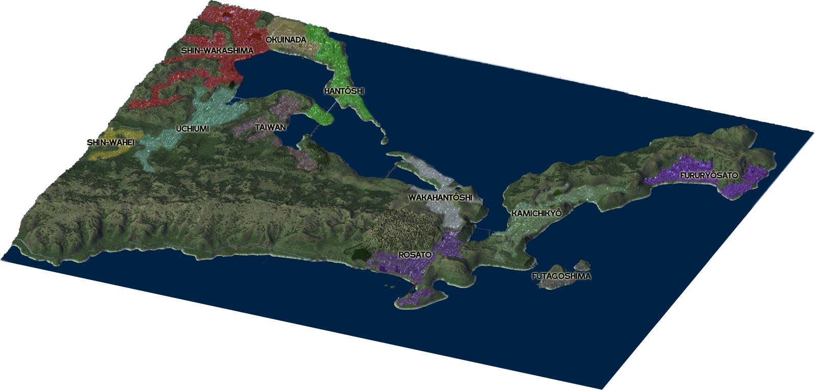 Ville active : | Ckrystahal • Heiwashima • Medrean City • Simwood • Sutton • Waheidaitoshi | |
