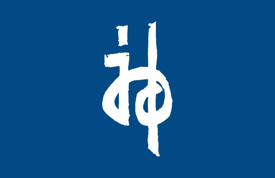 Le drapeau actuel a été pensé par le célèbre Japonais Yamaoka Tesshū (山岡 鉄舟) qui passa à la fin du XIXe siècle dans la ville. Charmé par ses temples, et acteur important au Japon de la Restauration de Meiji (1868), il offrit à la ville sa réalisation : un drapeau bleu orné du kanji kami 神 calligraphié. La mairie n'a retrouvé que récemment cette pièce inestimable dans ses archives (2017). Immédiatement, il a été décidé d'en faire l'ornement officiel de la ville.