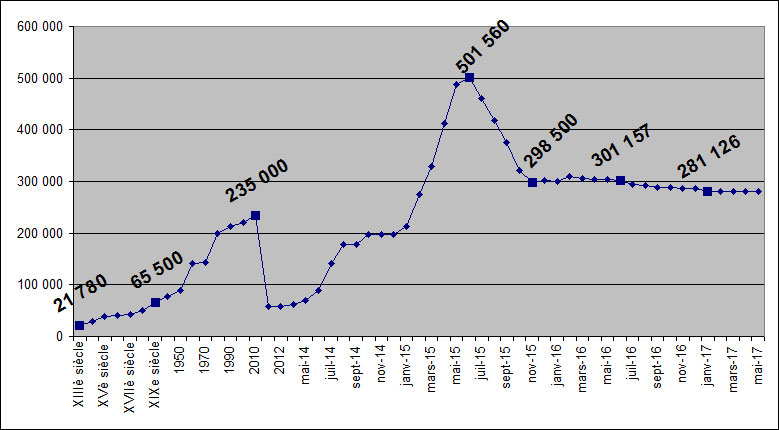 Recensement effectué à la fin du mois.
