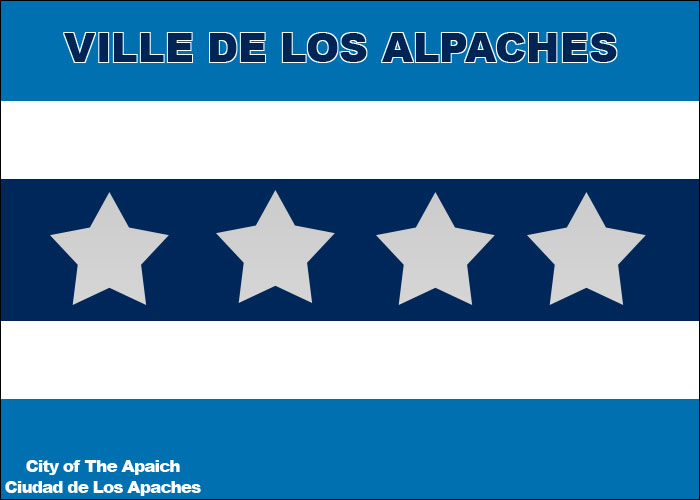 Los Alpaches est une ville des Apach, avec ses 500 000 habitants, elle constitue une ville moyenne, qui joue entre la nature et l'urbanisme. Parmis ses sites touristiques, vous pourrez trouver, "Les Canaux de Los Alpaches", des "avenues" de canaux qui suivent les routes, mais aussi la "Gare St Jean", une gare moderne, qui sait se mélanger avec l'ancien. Depuis quelques années, le centre ville a été totalement refait, avec l'un des échangeurs les plus grands de la région, en effet c'est environ 300 000 voitures qui empruntent l'échangeur aux 3 autoroutes, mais nous en parlerons plus tard.