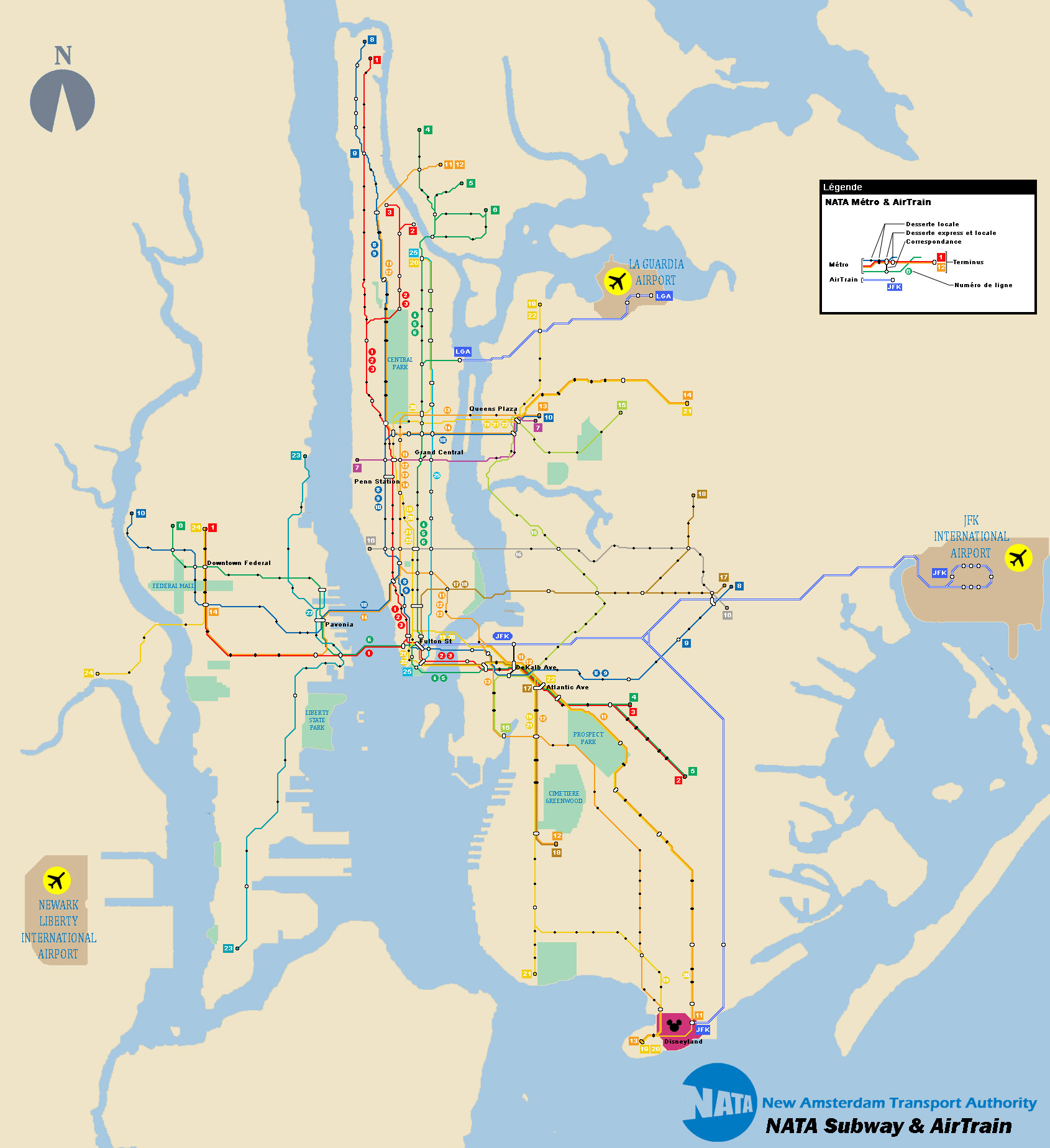 Les lignes de banlieues sont exploitées par la New Amsterdam Transport Authority (NATA), elles desservent les zones trop éloignées pour le métro.
