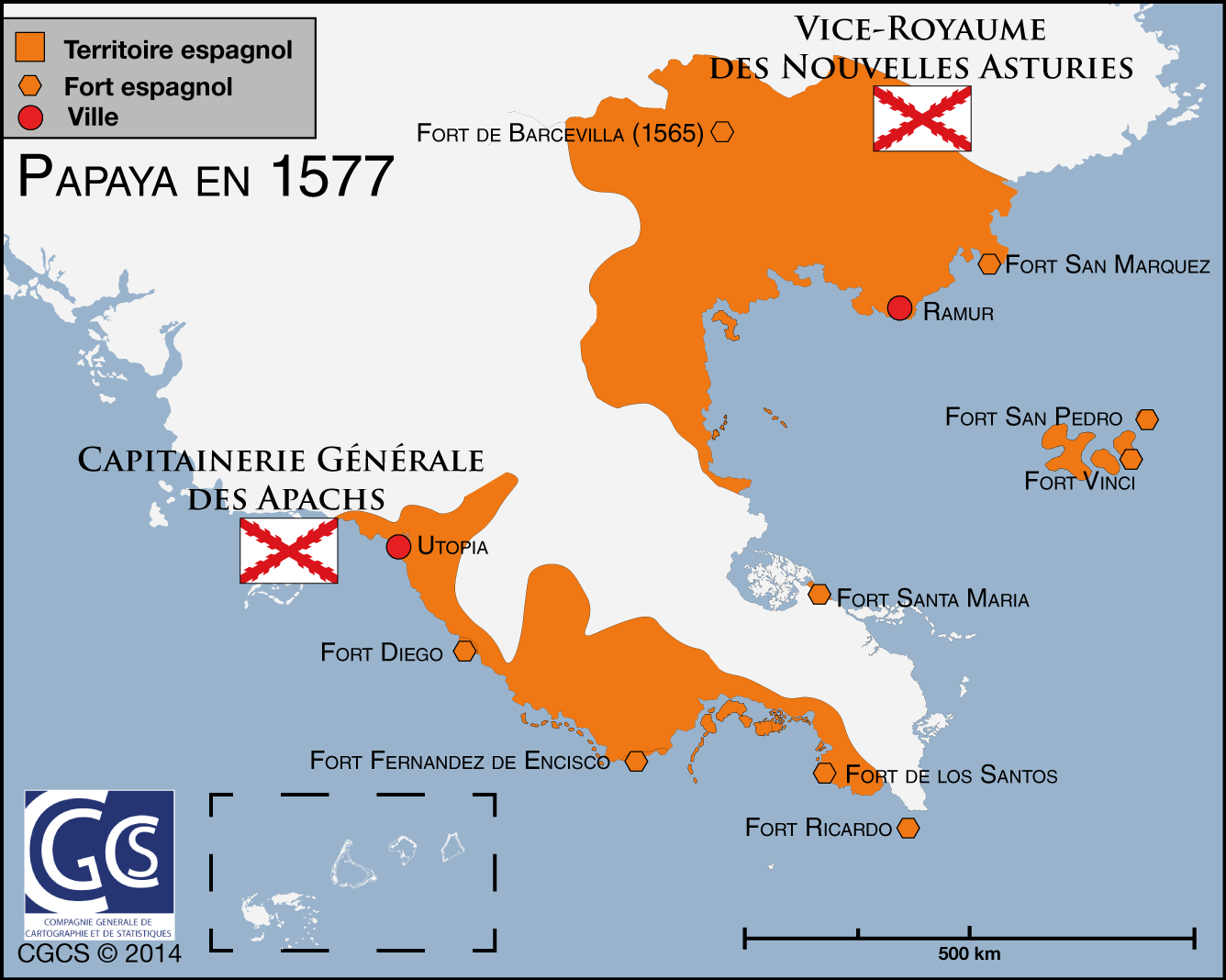 Capitale : Utopia Capitales des Etats : Sun City (Comores) • Utopia (Apach et capitale fédérale) • Ramur City (Grand Sud) • Las Islas Carlottas (Picaros) |
