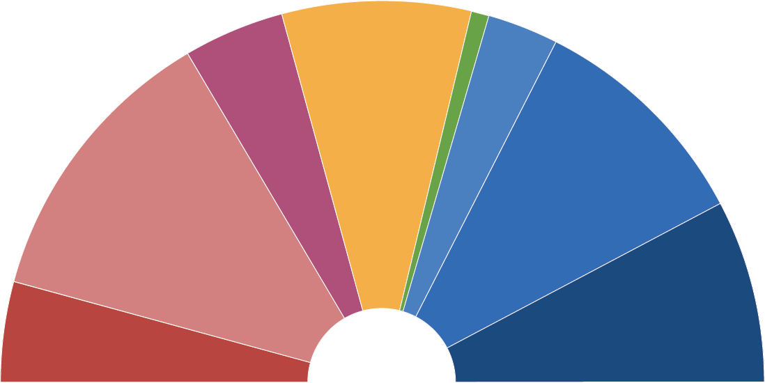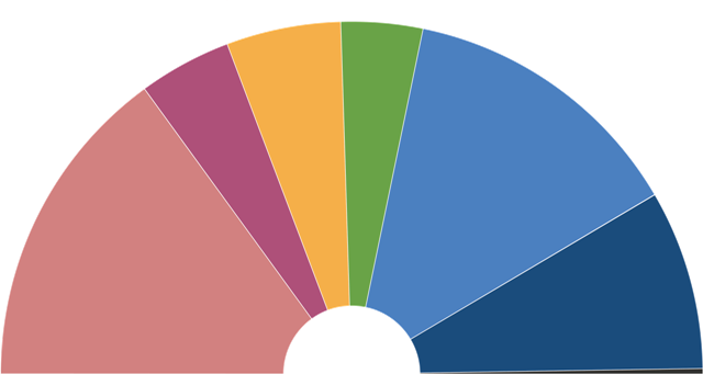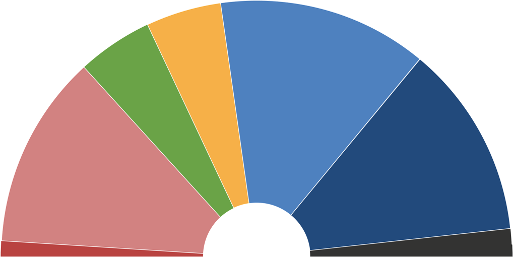 Socialiste et Travailliste (24,5%) Écologiste (9,5%) Mouvement Libéral-Démocrate (9,5%) Nationaliste et Capitaliste (3,5%) Gauche Citoyenne et Républicaine (2%) |