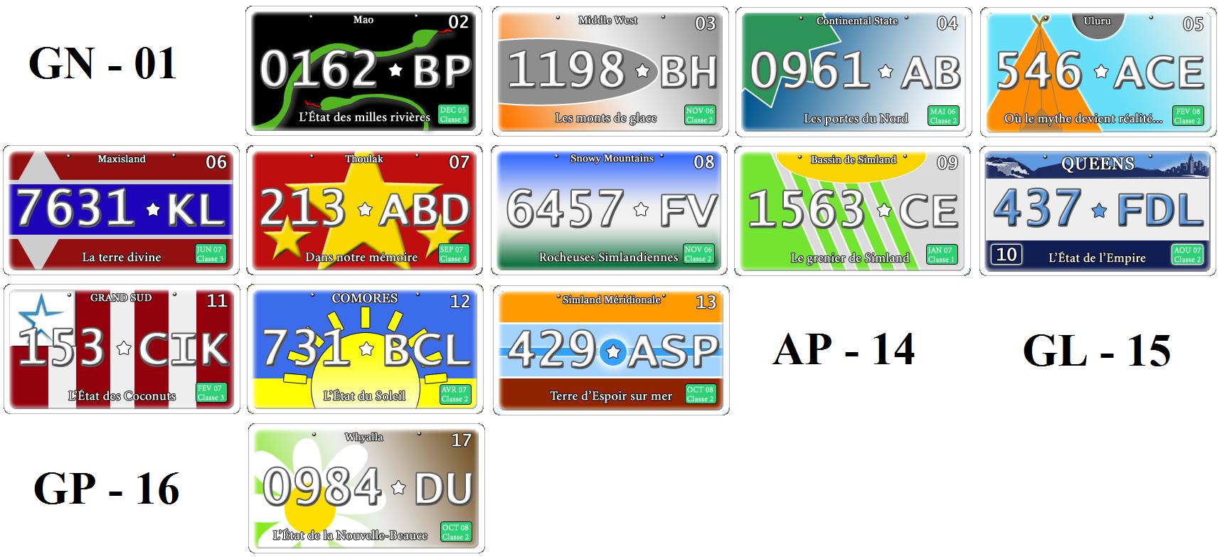 Les plaques des Etats sont différentes par rapport au reste de Simland. Elle se conserve durant tout la vie du véhicule quand il reste dans le territoire Papaïotte.