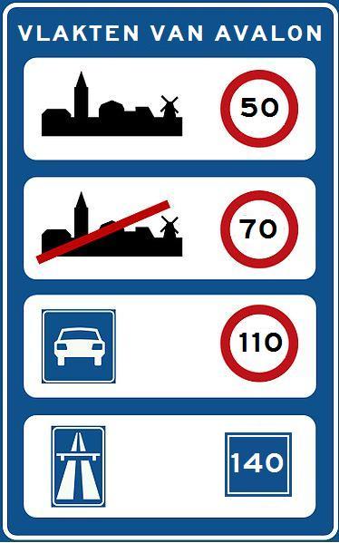 Les vitesses maximales autorisées aux Plaines de l'Avalon (abréviation officielle: PA) sont :