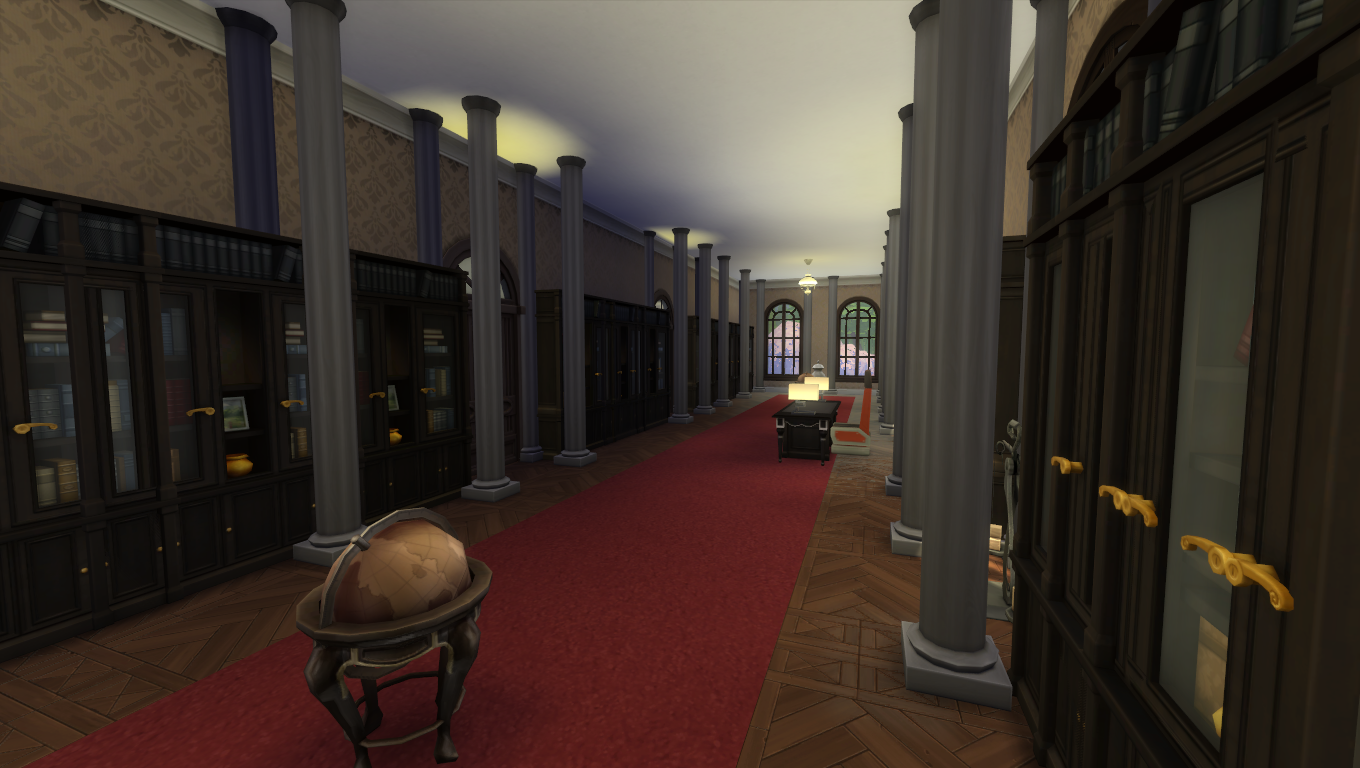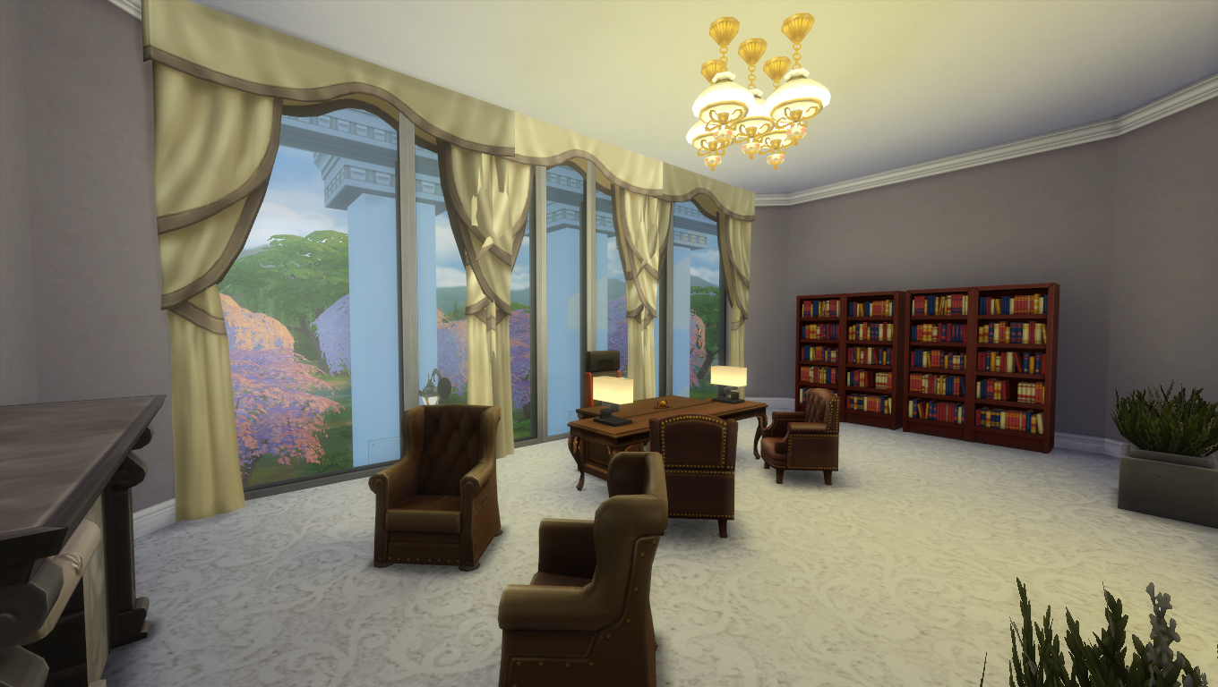 La bibliothèque est la plus vaste pièce du bâtiment, c'est aussi l'une des plus belle, c'est une véritable mine de culture et d'informations classées top secrète, il paraît qu'on pourrait même y trouver le carnet médical du président par intérim Sim Hurban. Cette pièce est sombre et on y trouve en son centre un bureau, elle sert généralement de décor pour les interventions télévisées du vice-président.