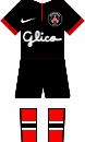 Enfin, un troisième maillot, très ressemblant au domicile mais avec un fond noir et des détails rouge, est un clin d'oeil au surnom du club, les "Shadows". Par ailleurs, la tunique sombre représente l'ombre de l'ancien Heiwashima United des Vanlky et autres Svensson, pour rappeler aux nouveaux éléments que malgré les événements récents, United est un grand club à Simland et qu'il faut porter honneur à ses pionniers qui ont su mouiller le maillot et porter haut l'emblème à la tour. Ce dernier maillot aura été porté qu'en match de préparation.