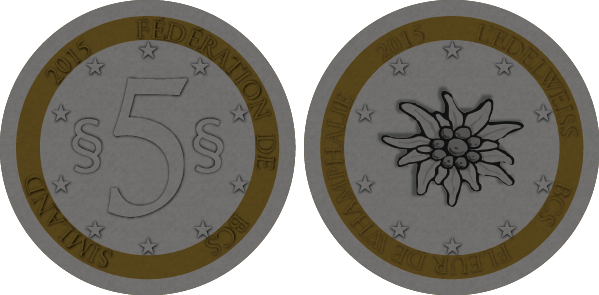Les pièces de 2 et 5 simléons arborent le symbole de la Whamphalie : la fleur d'edelweiss. |