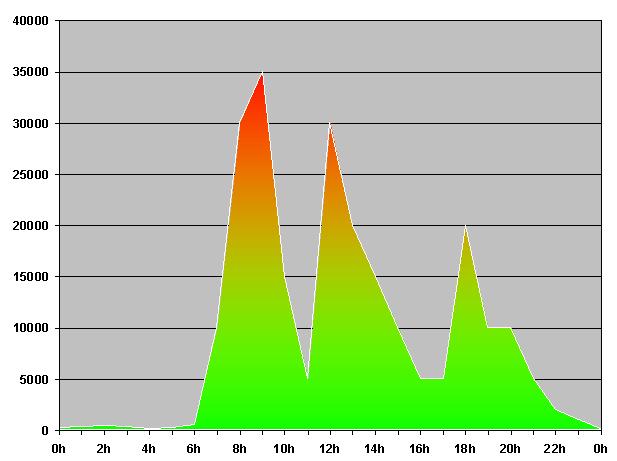 Températures (en °C) | 2 | 5 | 15 | 25 | <span; style="font-weight: ; font-size: 1.0em; color: #f12f32 "> 30 | 34 | 32 | <span; style="font-weight: ; font-size: 1.0em; color: #f12f32 ">36 | 25 | 18 | 10 | 5 |