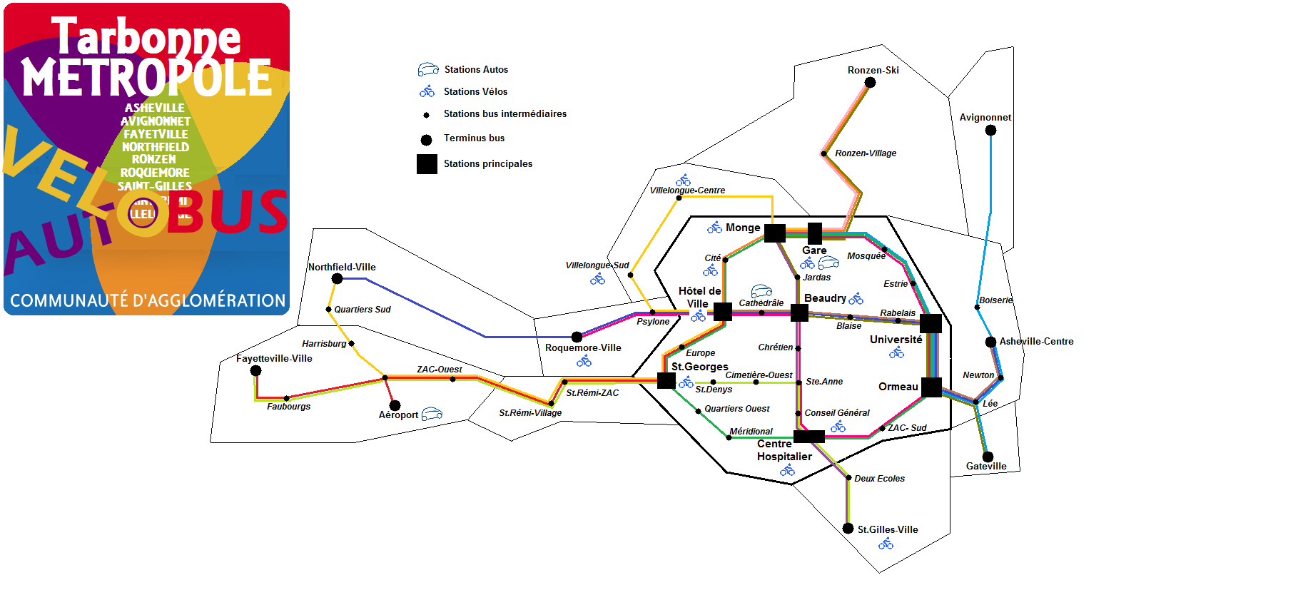 La Communauté d'Agglomération de Tarbonne regroupe dix communes et quelques 150.000 habitants; elle a notamment la gestion de l'aéroport, des transports publics (bus, vélos et autos ),des services techniques des eaux, du traitement des déchets, de l'approvisionnement en électricité ainsi que de l'université du Psylone.