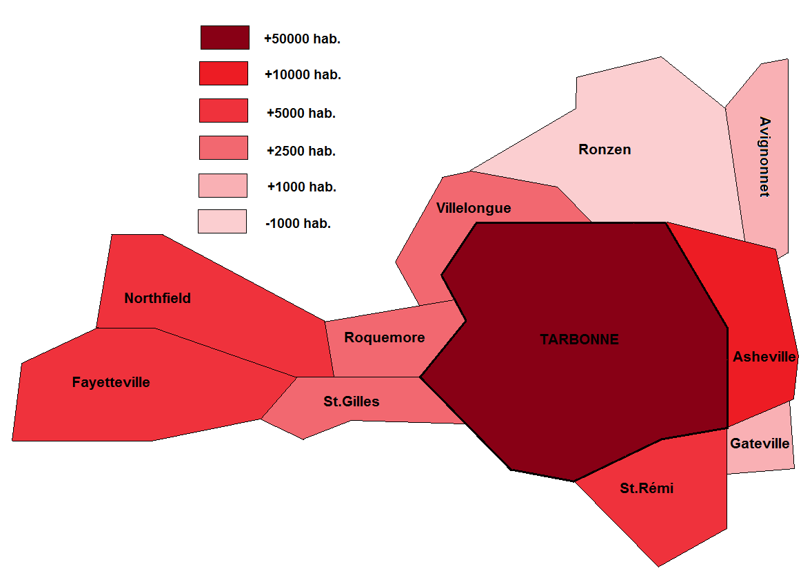 • Tarbonne, Asheville, St.Rémi, Villelongue, Fayetville, Northfield, Ronzen, Avignonnet, Gateville et St.Gilles.