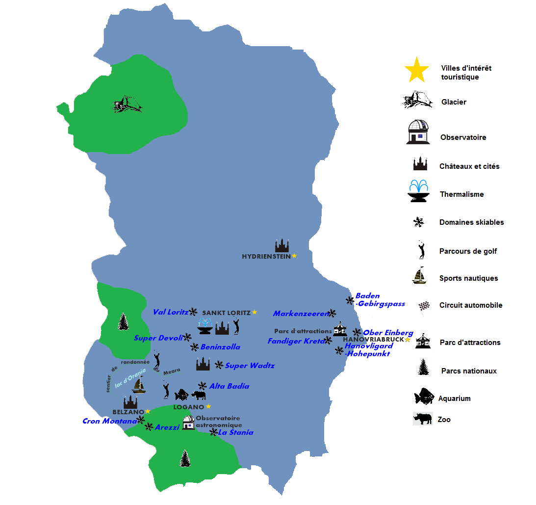 Initié dès la fin des années 60 en complément de la pêche, il se localise encore surtout aujourd'hui autour du '''lac d'Orania''' : la beauté des paysages, l'offre importante de logements saisonniers, la possibilité de faire des croisières, ont permis ce développement; | Initié dès la fin des années 60 en complément de la pêche, il se localise encore surtout aujourd'hui autour du '''lac d'Orania''' : la beauté des paysages, l'offre importante de logements saisonniers, la possibilité de faire des croisières, ont permis ce développement; les villes de [[Belzano]] sur la rive sud au même titre que la capitale [[Logano]], offrent quelques belles plages. <br> | ||