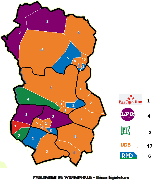 [[Fichier:Decoupagecirconscriptionswh.png|thumb|right|200px|'''Le découpage des 30 circonscriptions législatives''']] | [[Fichier:Decoupagecirconscriptionswh.png|thumb|right|200px|'''Le découpage des 30 circonscriptions législatives''']] | ||