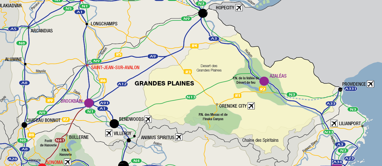 | Animus Spiritus | Azaleas | Bendwoods | Brockbain | Château Bonnot | Hopecity | Orenoke City | Providence | Saint Jean sur Avalon | Villeroy | |