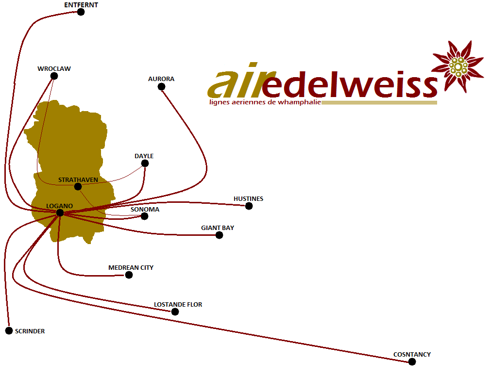 Air Edelweiss est une compagnie aérienne simlandaise publique opérant des vols commerciaux au départ de l'Etat de la Whamphalie créée le 25 avril 2014 par Filipe Roxboro.