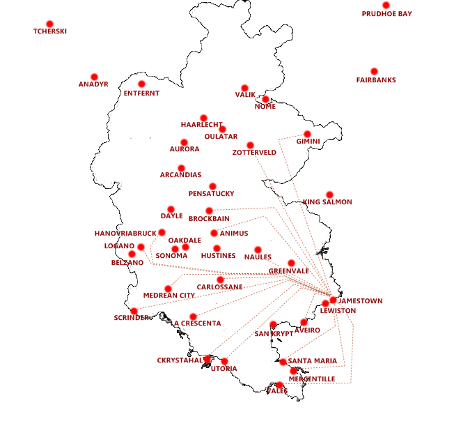 • Hub Pacifique de Lewiston : base régionale opérant des vols domestiques vers l'est et le sud de Simland ainsi que des vols internationaux.