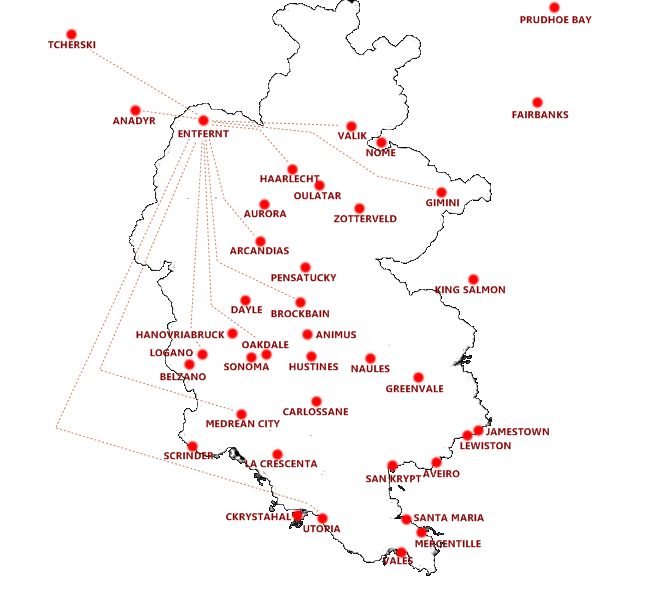 • Hub Continental de Brockbain : base régionale opérant des vols domestiques vers le nord et l'est de Simland ainsi que des vols internationaux.