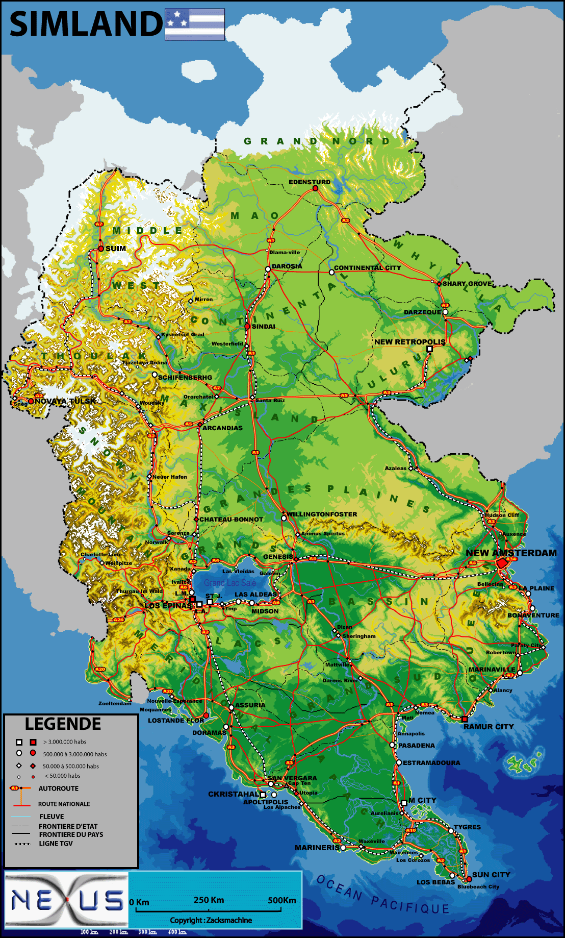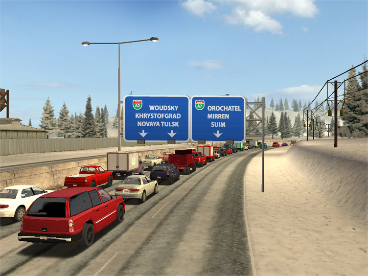 Les autoroutes nationales ou encore appelées inter-étatiques, sont des axes destinés à la circulation automobile de très grande capacité entre les villes de Simland. La circulation s'y fait sur des chaussées en sens unique, à plusieurs voies (au minimum 2x2 voies), afin d'y permettre une circulation fluide et à vive allure. Outre les déplacements automobiles, un grand nombre de camions de fret utilisent le système autoroutier simlandais.