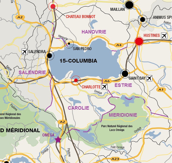 - La route nationale express de Charlotte vers l'A23 et le sud simlandais, véritable pénétrante économique pour la Méridionie et le sud columbien.