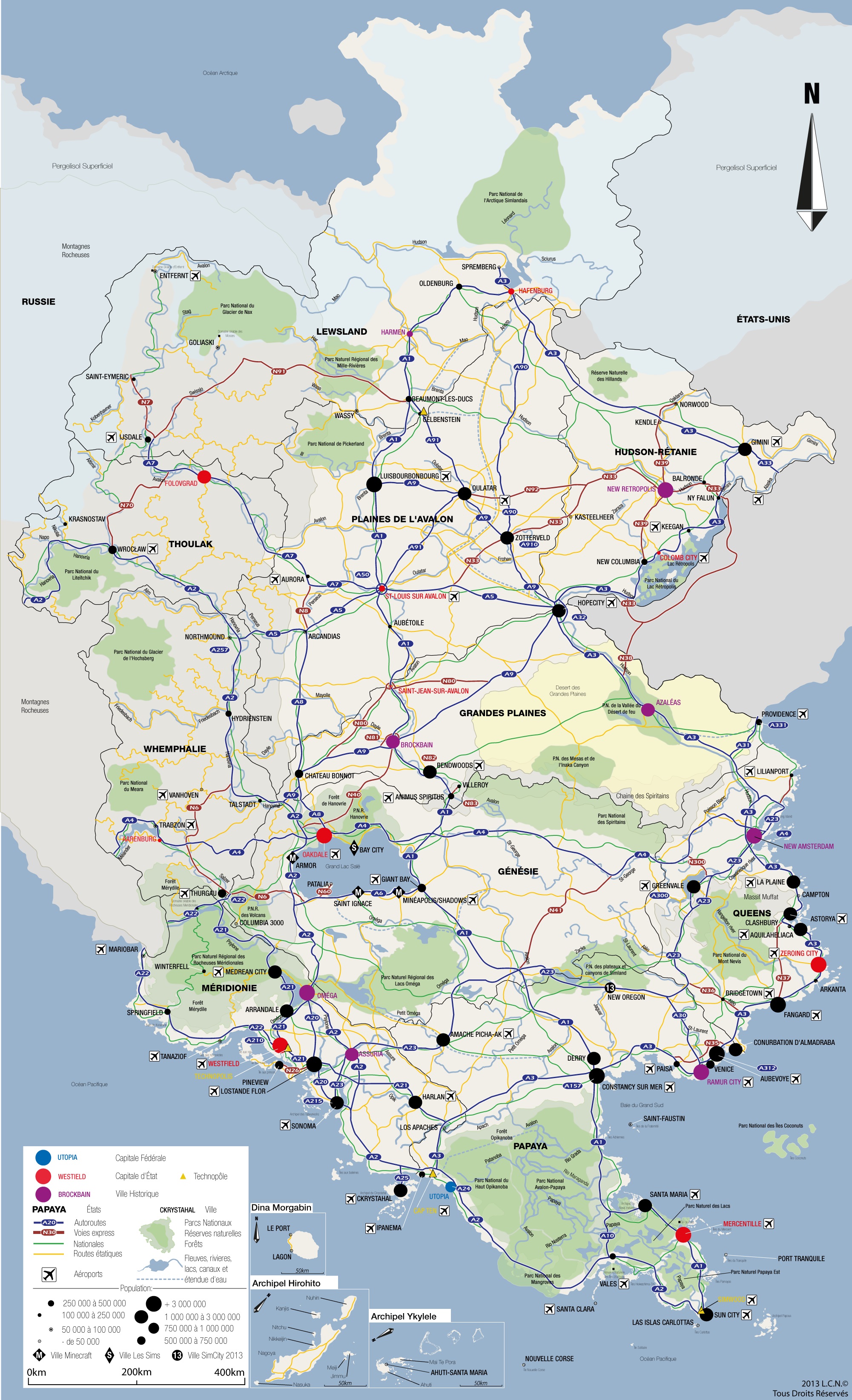 Le fondement de Simland, ce sont ses villes: elles peuvent aller du simple village de 2.000 habitants à la métropole de 20 millions d'habitants. Mais c'est aussi un pays fédéral de 9 régions (anciennement 16 états) ayant chacune une autorité relative; cependant les instances suprêmes de la nation ont désigné comme capitale fédérale la ville d'Utopia dans la région du Papaya. Voici la liste officielle de ces villes classées par régions; mise à jour le 26 Août 2012.
