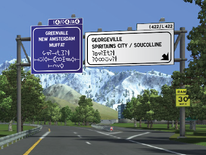 - L'A23 traverse la région d'Est en Ouest, à l'extrême sud. A l'Est, elle rejoint la Conurbation du Simland Méridional, et à l'ouest elle va à Ramur City, Zeroing City, New Amsterdam, etc. Elle traverse les districts de Méridionie, de Génésie Centrale, et de Basse Génésie.