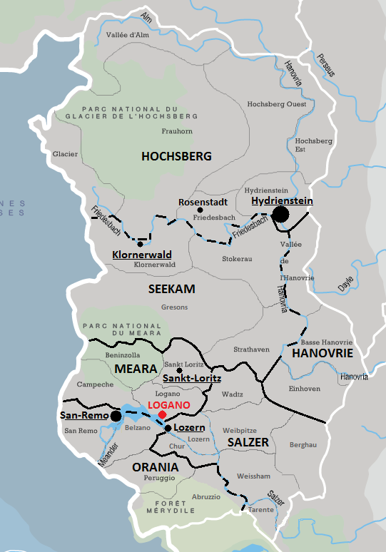 | Hanovriabruck | Hydrienstein | Klörnerwald | Logano | Lugbourg | Lozern | Rosenstadt | Sankt-Loritz | San-Remo | |